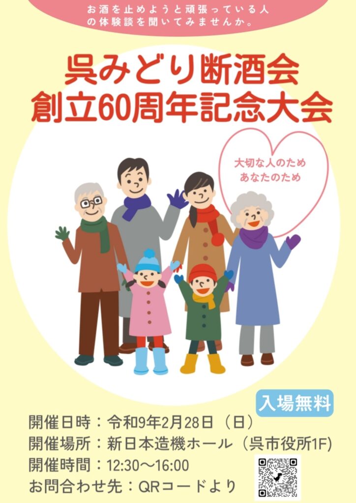 呉みどり断酒会 創立60周年記念大会の開催日決まる。